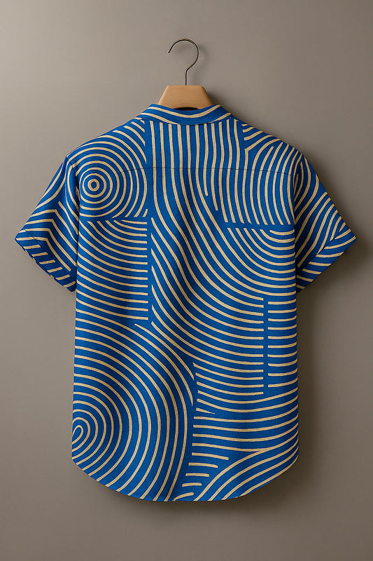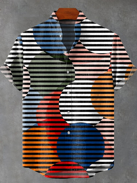 Geometry roundness streak Color match illusion Vintage Print Casual 100% Cotton Shirt