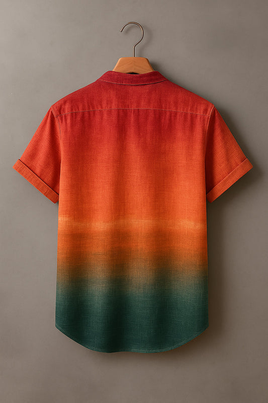 Gradient Stripes Art Print Casual 100% Cotton Shirt