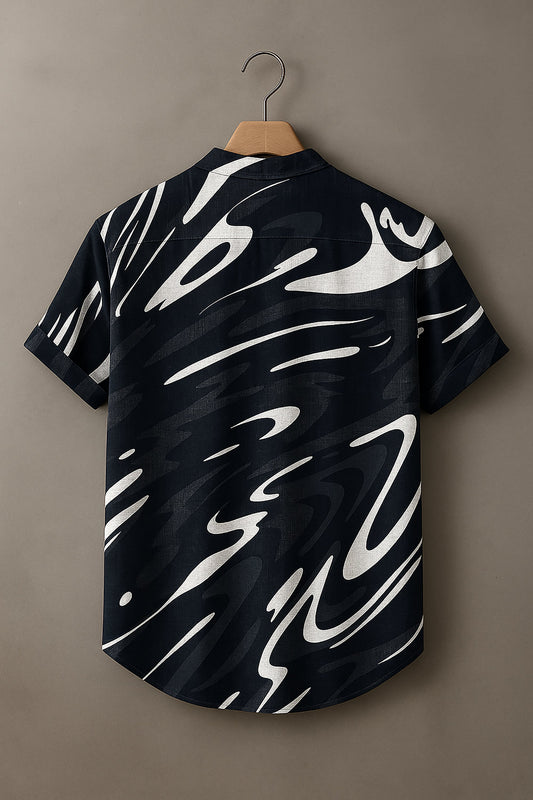 Waves Clouds Abstract Art Print Casual 100% Cotton Shirt