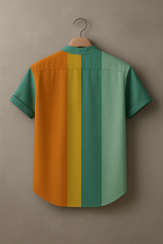 Abstract Green Geometric Stripes Vintage Print Casual 100% Cotton Shirt