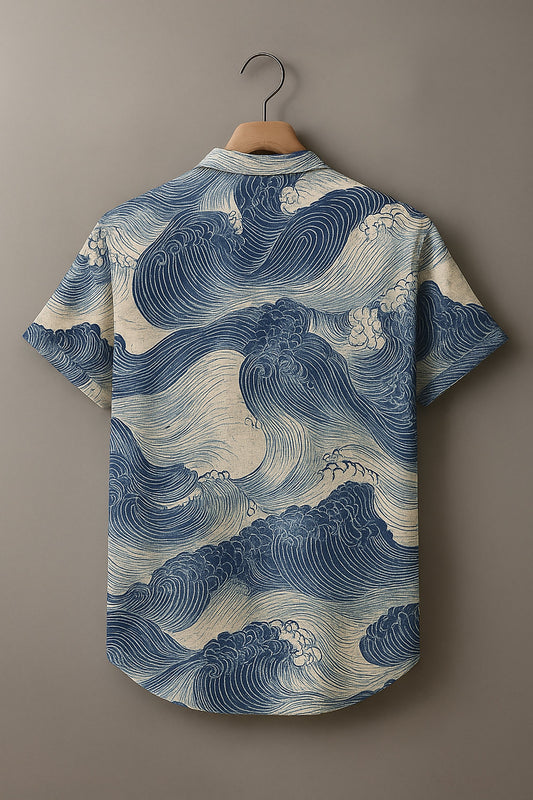 Color match Wave point Vintage Print Casual 100% Cotton Shirt