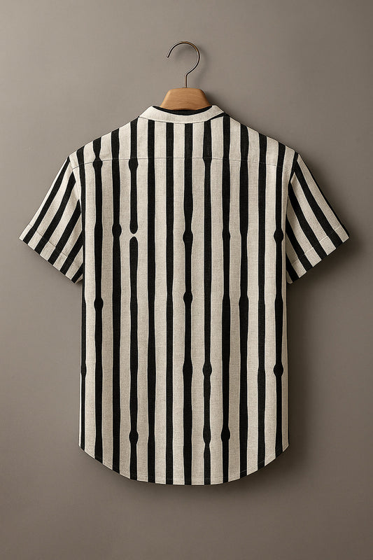 Men Classic Multi Stripes Crochet Semi Sheer Shirt