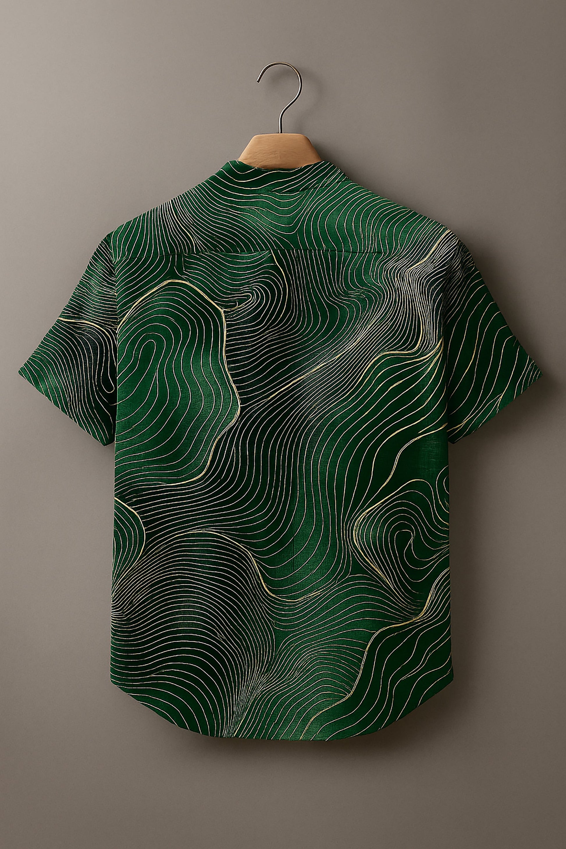Abstract Green Geometric Stripes Vintage Print Casual 100% Cotton Shirt